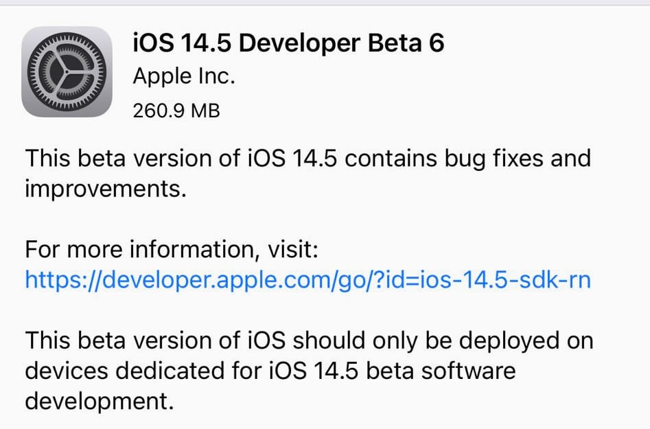 Apple выпустила шестую бета-версию iOS 14.5 для разработчиков.