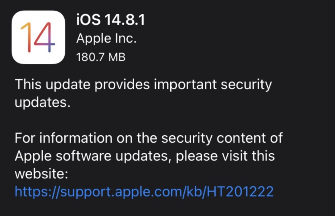 Совершенно внезапно Apple выпустила iOS 14.8.1 для всех желающих, кто ещё по какой-либо причине не установил iOS 15.