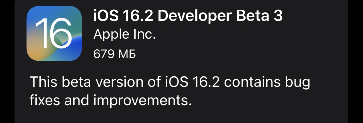 Размер ПО — около 700 МБ. Скачать iOS 16.2 beta 3 можно уже сейчас «по воздуху».