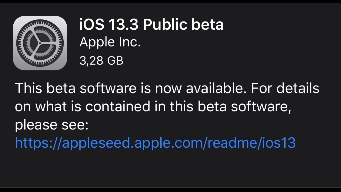 Размер прошивки — около 3,5 ГБ. Скачать iOS 13.3 Public beta 1 можно уже сейчас «по воздуху». Нужно только зарегистрироваться в программе бета-тестирования Apple.