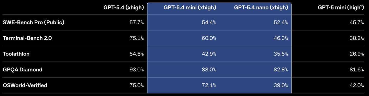 OpenAI представила две новые модели: GPT-5.4 mini и nano. Это самые компактные, быстрые и дешёвые ИИ-модели компании на сегодняшний день.