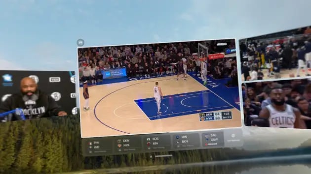 В другой вечер я посмотрел «Грейхаунд». Я также использовал приложение NBA, которое было обновлено под Vision Pro, для одновременной трансляции четырех игр: основная игра находилась посередине, а другие по бокам.