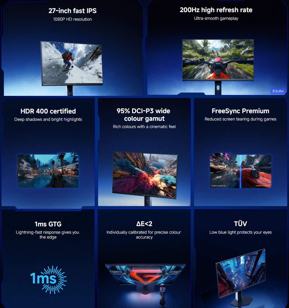 Речь идёт о 27-дюймовой модели с IPS-матрицей и разрешением Full HD (1920 × 1080). Максимальная яркость панели выросла до 400 нит против 250 нит у прошлогодней модели, есть поддержка HDR.
