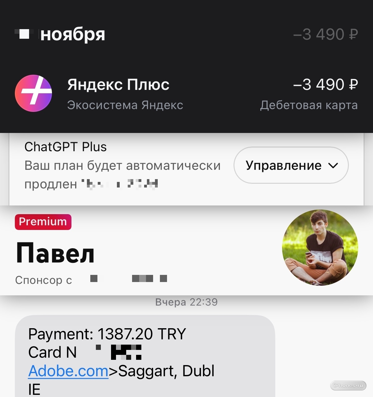 ⤷ Все остальные Apple, ChatGPT, YouTube, спортзал, связь и банк