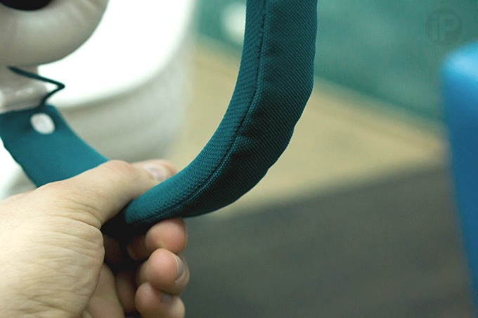 На одном из сайтов производителя указано, что внутри оголовья есть также металлическая пластина для прочности, но до нее мне добраться не удалось, так как ткань жестко прикреплена к пластиковой части с помощью кнопок, обозначающими правое и левое «ухо». Вероятно, это правда, иначе как можно объяснить такую исключительную гибкость оголовья?